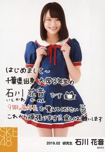 生写真(AKB48・SKE48)/アイドル/SKE48 石川花音/膝上・印刷メッセージ入り/SKE48 9期生お披露目 コメント入り生写真