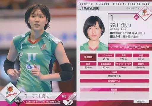 スポーツ/レギュラーカード/-/2018-19 V・LEAGUE女子公式トレーディングカード RG(JT)-01 [レギュラーカード] : 芥川愛加