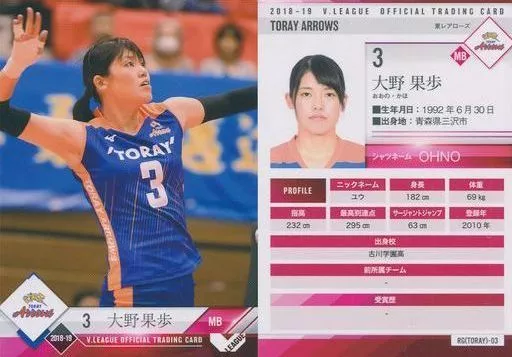 スポーツ/レギュラーカード/-/2018-19 V・LEAGUE女子公式トレーディングカード RG(TORAY)-03 [レギュラーカード] : 大野果歩