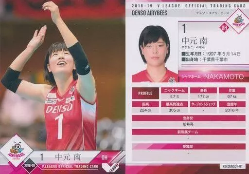 スポーツ/レギュラーカード/-/2018-19 V・LEAGUE女子公式トレーディングカード RG(DENSO)-01 [レギュラーカード] : 中元南