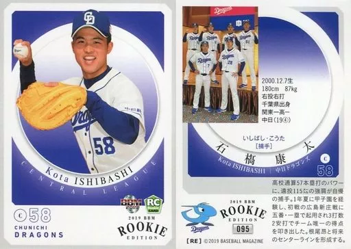 BBM/レギュラーカード/中日ドラゴンズ/BBM2019 ルーキーエディション 095 [レギュラーカード] : 石橋康太