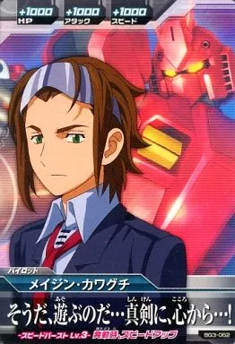 分類:パイロット/レア度:Cシリーズ:BUILD G 第3弾商品解説■ガンダムトライエイジとはモビルスーツカード3枚、パイロットカード3枚の計6枚のカードで3機編成の小隊を組んで戦う進化系ガンダムカードバトルだ!