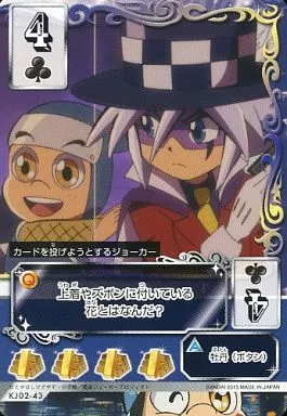 謎解きミラクルポーカー/数札/クローバー4/第2弾 ブースターパック KJ02-43[数札]:カードを投げようとするジョーカー