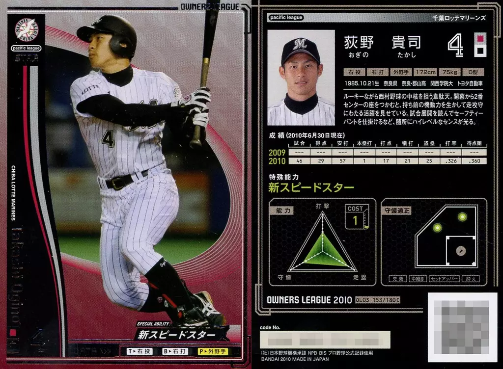オーナーズリーグ/ST/千葉ロッテマリーンズ/OWNERS DRAFT 03 OL03 153/180[ST]:[コード保証無し]荻野 貴司