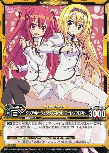 レベルネオ/プロモーションカード/キャラクター/黄/精霊使い/2015年05月 公認大会 参加賞 P-005[プロモーションカード]:クレア・ルージュ&リンスレット・ローレンフロスト