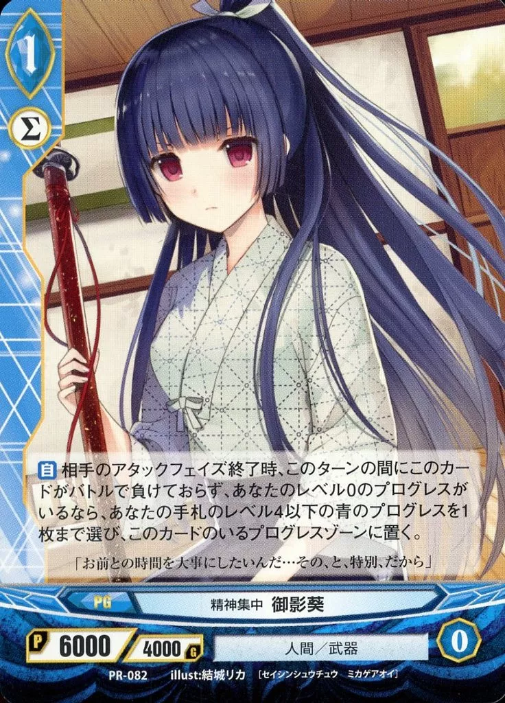 アンジュ・ヴィエルジュ/PR/青/PG/人間/武器/2015年05月ショップ大会参加賞 PR-082[PR]:精神集中 御影葵