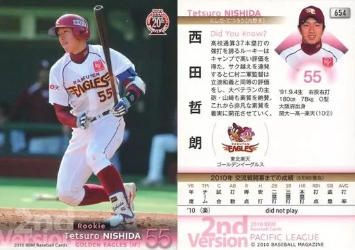 BBM/レギュラーカード/東北楽天ゴールデンイーグルス/BBM 2010 ベースボールカード 2ndバージョン 654 [レギュラーカード] : 西田哲朗