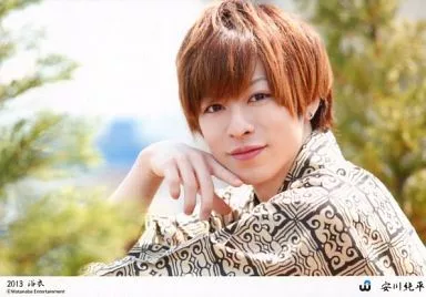 生写真(男性)/俳優 安川純平/横型・バストアップ・浴衣白・黒・左向き・右手顔・口閉じ・植物・「2013 浴衣」/公式生写真