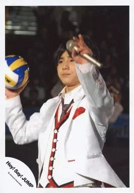 生写真(ジャニーズ)/アイドル/Hey! Say! JUMP Hey! Say! JUMP/山田涼介/ライブフォト・上半身・衣装白・赤・右手バレーボール・左手マイク・背景黒/公式生写真