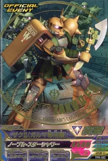 分類:モビルスーツ/レア度:PRシリーズ:「スペシャルカードパック13」商品解説■ガンダムトライエイジとはモビルスーツカード3枚、パイロットカード3枚の計6枚のカードで3機編成の小隊を組んで戦う進化系ガンダムカードバトルだ!