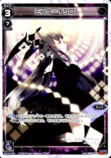 分類:黒/レア度:LCシリーズ:[WX-10]ブースターパック チェインドセレクター商品解説■「WIXOSS(ウィクロス)」は2014年にTVアニメと共にスタートした美少女キャラクターがいっぱいのトレーディングカードゲーム(TCG)です!