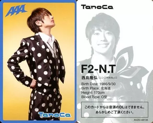 コレクションカード(男性)/TanoCa「Charge Go!」 AAA“TanoCa”着うたフル(R)ver.(AVZD-48135) F2-N.T:AAA/西島隆弘/TanoCa「Charge Go!」 AAA“TanoCa”着うたフル(R)ver.(AVZD-48135)