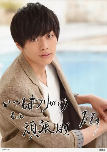 生写真(男性)/俳優 東啓介/バストアップ・衣装茶.白・印刷サイン、メッセージ入り「いつもありがとう もっと頑張ります。」・A4サイズ/WESHOP物販 特大スペシャルブロマイド