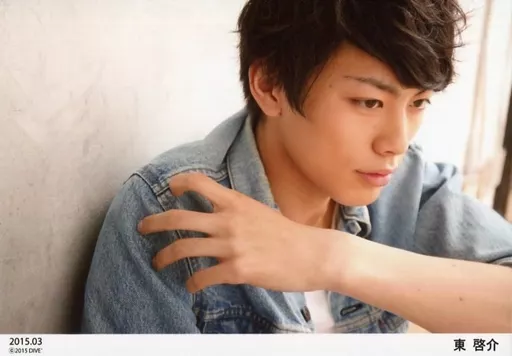 生写真(男性)/俳優 東啓介/横型・バストアップ・デニム衣装青・左手肩・「2015.03」/公式生写真
