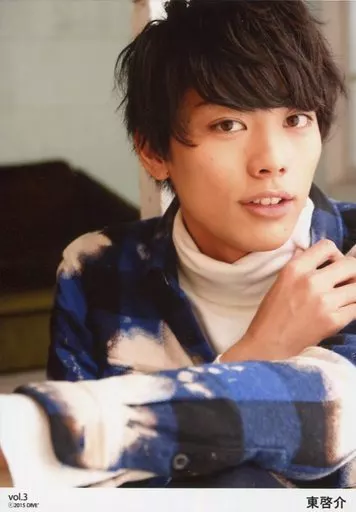 生写真(男性)/俳優 東啓介/バストアップ・衣装青.白.黒・右手胸・左手前・「Vol.3」/公式生写真