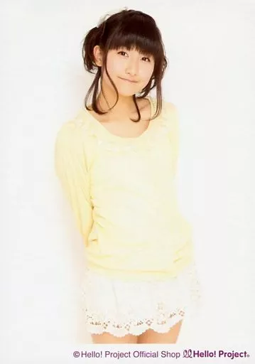 生写真(ハロプロ)/アイドル/モーニング娘。 モーニング娘。/佐藤優樹/膝上・衣装黄色・両手後ろ・顔傾げ・背景白/公式生写真
