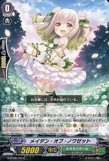 分類:ノーマルユニット/レア度:Cシリーズ:ヴァンガードG ブースターパック 第6弾「刃華超克」商品解説■ヴァンガードは1対1の対戦型カードゲームだ!カードを中心にアニメ・コミックなどのメディアミックスを展開しているぞ!