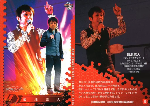 BBM/レギュラーカード/BBM2016 ドラゴンゲートカードセット 40 [レギュラーカード] : 菊池直人