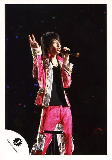 生写真(ジャニーズ)/アイドル/Ya-Ya-yah Ya-Ya-yah/鮎川太陽/ライブフォト・膝上・衣装ピンク 銀 金・右手ピース・左手マイク/公式生写真