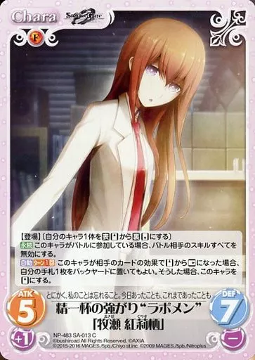 分類:Chara/レア度:Cシリーズ:ブースターパック - STEINS;GATE 0 & CHAOS;CHILD商品解説■■ChaosTCGとは?『ChaosTCG』とは、2人で対戦して遊ぶトレーディングカードゲームです。あなた自身がプレイヤーとなり、各作品のキャラクターの中から自分の大好きなキャラクターを自分のパートナーとして選び、パートナーと協力し合いながら、アリーナと呼ばれる舞台で対戦相手とゲームの勝敗を競います。