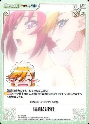 分類:Event/レア度:Rシリーズ:ブースターパック - 新妹魔王の契約者商品解説■■ChaosTCGとは?『ChaosTCG』とは、2人で対戦して遊ぶトレーディングカードゲームです。あなた自身がプレイヤーとなり、各作品のキャラクターの中から自分の大好きなキャラクターを自分のパートナーとして選び、パートナーと協力し合いながら、アリーナと呼ばれる舞台で対戦相手とゲームの勝敗を競います。