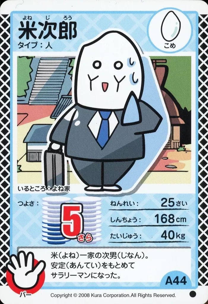 むてん丸カードゲーム/●/キャラカード/こめ/第一弾 回転むてん丸 A44[●]:米次郎
