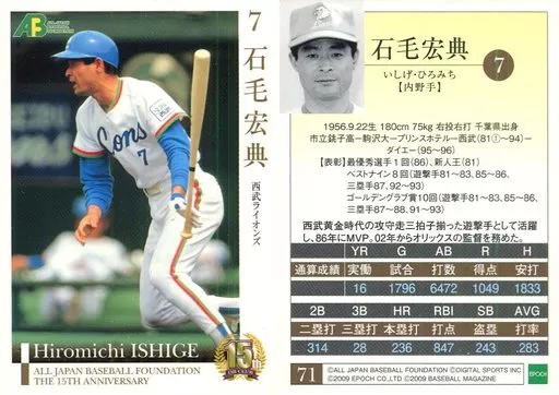 スポーツ/レギュラーカード/西武ライオンズ/日本プロ野球OBクラブ設立15周年記念 カードセット 第1集 71 [レギュラーカード] : 石毛宏典
