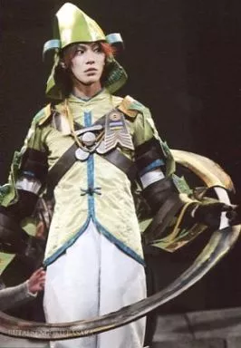 生写真(男性)/俳優 小谷嘉一(毛利元就)/ライブフォト・膝上・衣装緑・目線右・背景黒・キャラクターショット/舞台「戦国BASARA」武将祭2013/公式生写真