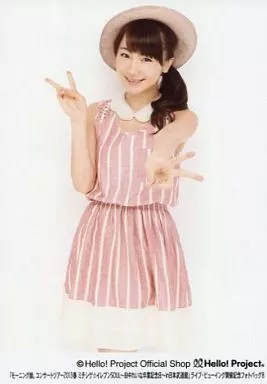 生写真(ハロプロ)/アイドル/モーニング娘。 モーニング娘。/石田亜佑美/膝上・衣装ピンク白・帽子・両手ピース/「モーニング娘。コンサートツアー2013春 ミチシゲ☆イレブンSOUL ~田中れいな卒業記念スペシャル~in日本武道館」ライブ・ビューイング開催記念フォトバッグB