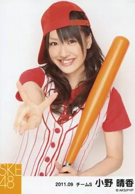 生写真(AKB48・SKE48)/アイドル/SKE48 小野晴香/上半身・衣装赤・白・帽子・左手ラケット・右手ピース/「2011.09」公式生写真