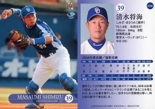 BBM/レギュラー/BBM2009 中日ドラゴンズ D38[レギュラー]:清水将海