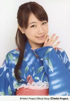 生写真(ハロプロ)/アイドル/モーニング娘。 モーニング娘。/石田亜佑美/上半身・衣装青・花柄浴衣・左手パー・笑顔/公式生写真