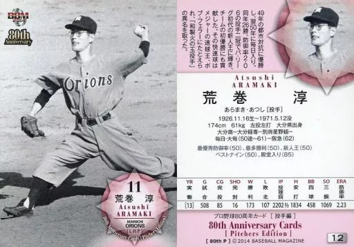 BBM/レギュラーカード/毎日大映オリオンズ/BBM2014 プロ野球80周年カード・投手編 12 [レギュラーカード] : 荒巻淳