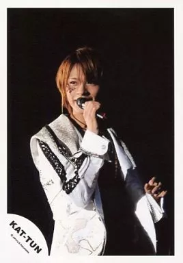 生写真(ジャニーズ)/アイドル/KAT-TUN KAT-TUN/上田竜也/ライブフォト・上半身・ジャケット白・インナー黒・右手マイク・目線左・背景黒/公式生写真
