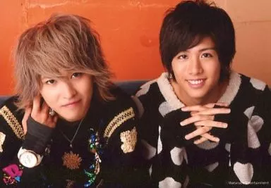 生写真(男性)/俳優 D2/池岡亮介・上鶴徹/横型・バストアップ・衣装黒・両手組み・右手頬・背景オレンジ/「D2LIVE」/公式生写真