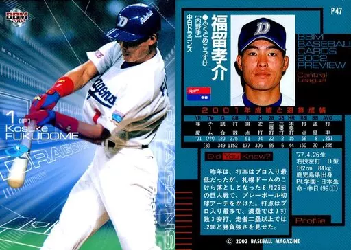 BBM/レギュラーカード/中日ドラゴンズ/BBM2002 ベースボールカード プレビュー P47 [レギュラーカード] : 福留孝介