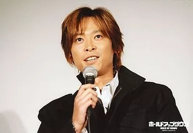 生写真(ジャニーズ)/アイドル/V6 V6/坂本昌行/横型・バストアップ・衣装黒白・右手マイク・枠無し・背景白/ホールドアップダウン