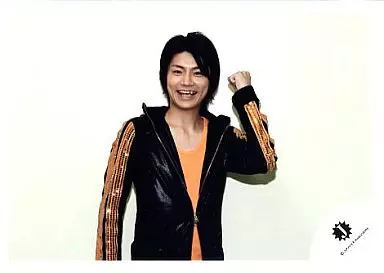 生写真(ジャニーズ)/アイドル/Kis-My-Ft2 Kis-My-Ft2/横尾渉/横型・上半身・ジャケット黒・インナーオレンジ・左手グー・笑顔・背景白/公式生写真