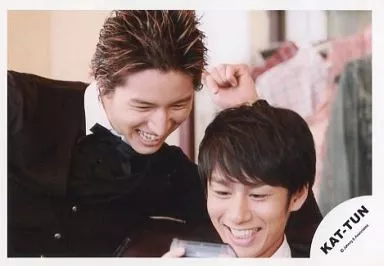 生写真(ジャニーズ)/アイドル/KAT-TUN KAT-TUN/中丸雄一・田口淳之介/横型・衣装黒・シャツ白・中丸両手ゲーム機・覗き込み/公式生写真