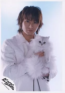 生写真(ジャニーズ)/アイドル/Kinki Kids Kinki Kids/堂本光一/上半身・衣装白・手に猫・背景水色/公式生写真