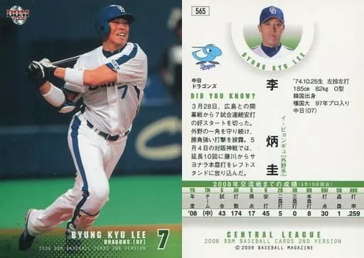 BBM/レギュラーカード/中日ドラゴンズ/BBM2008 ベースボールカード2ndバージョン 565 [レギュラーカード] : 李炳圭