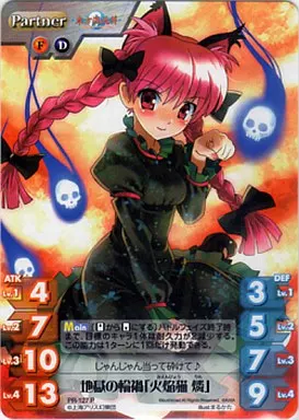 分類:Partner/レア度:PRシリーズ:2011新春 東方混沌符ショップ大会 優勝賞品商品解説■■ChaosTCGとは?『ChaosTCG』とは、2人で対戦して遊ぶトレーディングカードゲームです。あなた自身がプレイヤーとなり、各作品のキャラクターの中から自分の大好きなキャラクターを自分のパートナーとして選び、パートナーと協力し合いながら、アリーナと呼ばれる舞台で対戦相手とゲームの勝敗を競います。