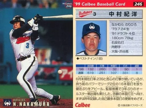 スポーツ/1999プロ野球チップス第4弾/近鉄/レギュラーカード 246:中村 紀洋