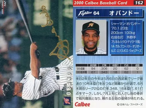 スポーツ/2000プロ野球チップス ラッキーカード特典/日本ハム/ゴールドサインカード 162:オバンドー(箔押しサイン入)
