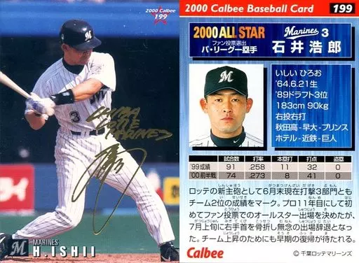 スポーツ/2000プロ野球チップス ラッキーカード特典/ロッテ/ゴールドサインカード 199:石井 浩郎(箔押しサイン入)