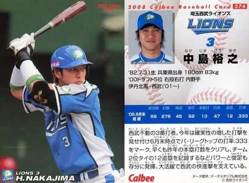 スポーツ/2008プロ野球チップス第3弾/西武/レギュラーカード 274:中島 裕之