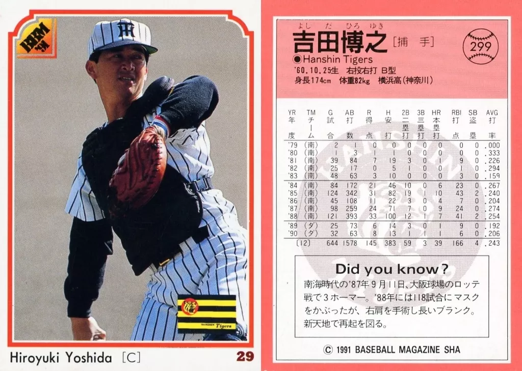 BBM/レギュラーカード/BBM91ベースボールカード 299 : 吉田博之「阪神タイガース」