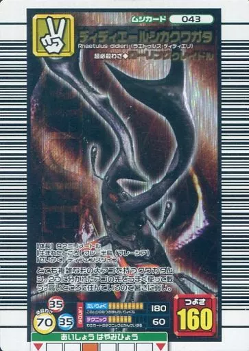 分類:ムシカード/レア度:銅シリーズ:2006 セカンド ~パーフェクトキング~商品解説■甲虫王者ムシキングはキミの町のショッピングセンター・ゲームセンターにおいてある甲虫バトルゲームだ!!カードを使って世界中の甲虫による大はく力のムシバトルが楽しめるぞ!