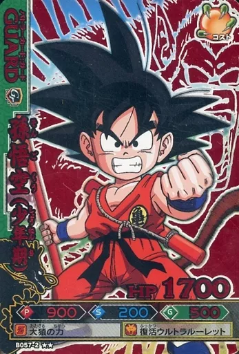 DBZデータカードダス/金レア/バトラーカード:ガード/データカードダス ドラゴンボール改 ドラゴンバトラーズ 第2弾 B057-2[金レア]:孫悟空(少年期)