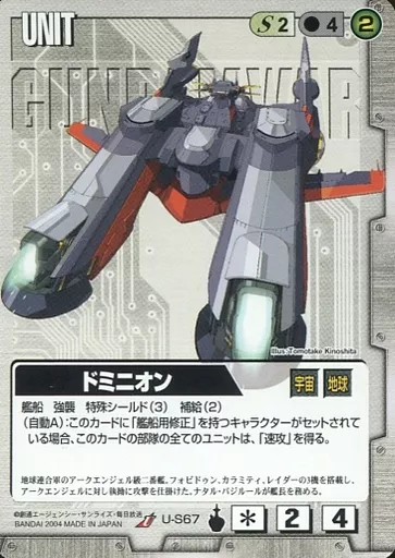 分類:白/レア度:Uシリーズ:第13弾 烈火の咆哮商品解説■すべてがリアルな機動戦士ガンダムTCG!登場MS、登場人物はもちろん、作戦名、戦法、コロニー落としの要素までガンダム戦史を忠実に再現!ガンダムファンであれば、ライトな方からヘビーな方まで十分楽しめる、全く新しい「ゲーム」の形、それが二人用の本格的な戦術級対戦TCG「ガンダムウォー」です!